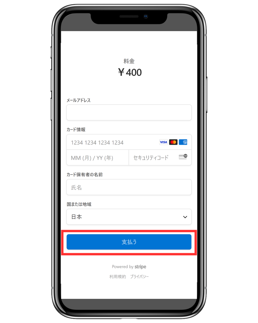 決済は現金もしくは情報の登録によりクレジットカードをご利用いただけます。