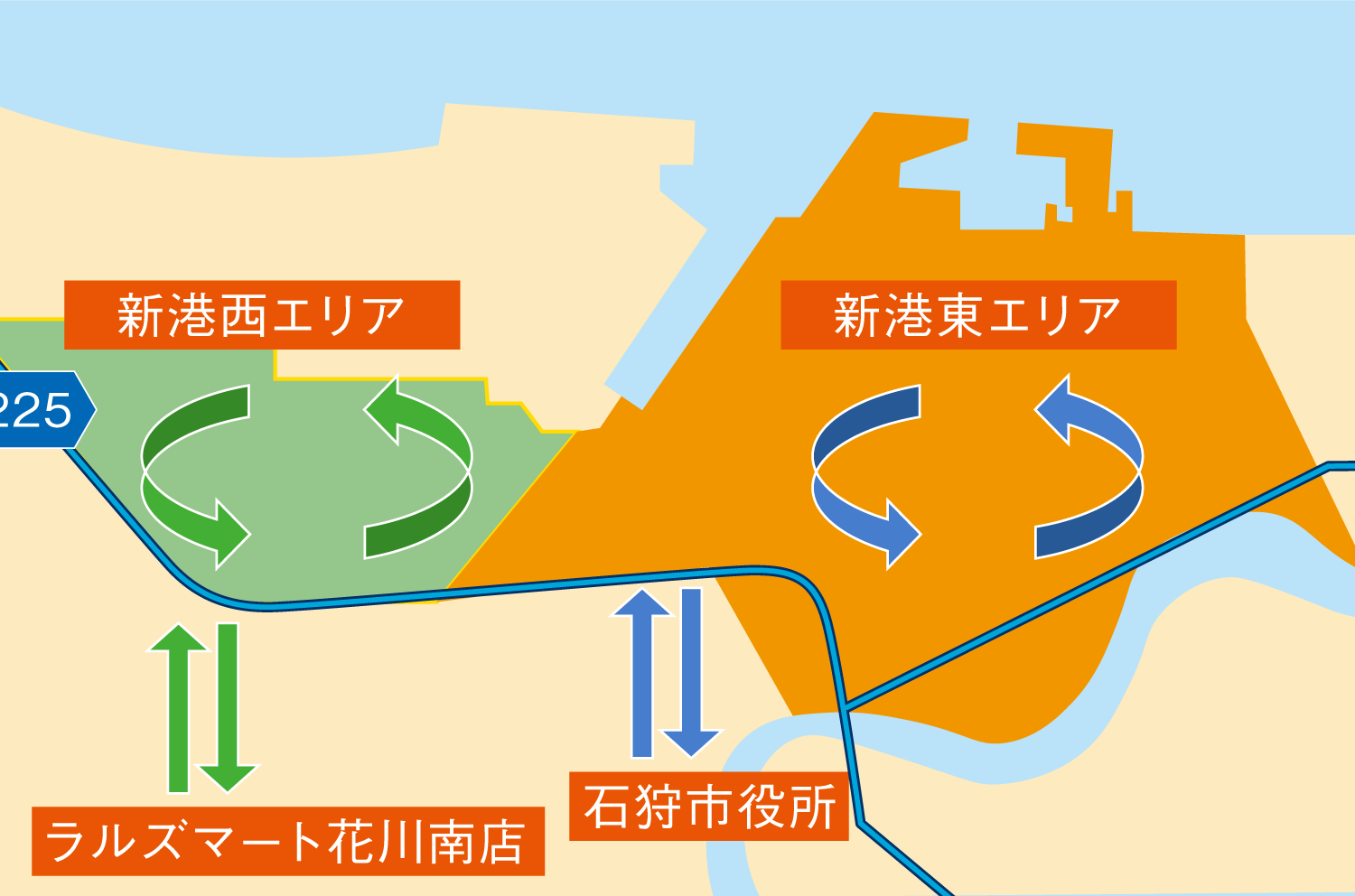 - 朝便はラルズマート花川南店もしくは石狩市役所から、夕便は各社からご乗車いただけます。